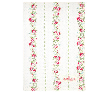 A white cloth with a floral pattern featuring red and pink flowers and green leaves is displayed. The cloth has a green border with a red and white label at the bottom right corner that reads 'GREENGATE'. | GreenGate Geschirrtuch "Gabby white" | 23b2518443e33b666707f506ac027859b8adb72922a0453c91e021905491d661 | 001065736046 | 0 | 0 | 37 | 4 | 0 | 0 | |
