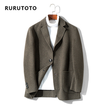 A brown blazer with a white shirt underneath is displayed on a hanger against a white background. The blazer has a button on the left side and a pocket on the right side. The hanger is wooden with a metal hook. | Autumn and winter new wool coat mens double-sided short cashmere jacket small suit Korean version wool business suit man | e35a422230f3ffee14cd547b014485ce621359c20180318b8f11245d077def42 | 001065736034 | 0 | 0 | 41 | 19 | 0 | 0 | |