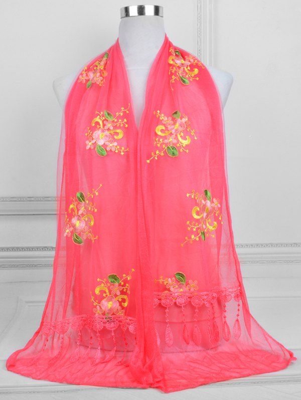 A mannequin displays a pink shawl with intricate floral embroidery and lace details. | Affordable Lace Flower Leaf Pattern Tassel Long Scarf | 3b856dbfaee08bf620f00f4660d8c03415138c315ec22276788de2edc0e73ddb | 001065736043 | 0 | 0 | 13 | 8 | 0 | 0 | |