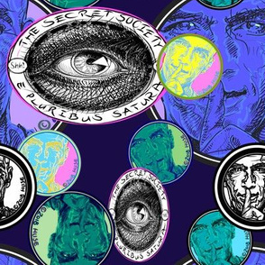 The second image is a collage of various portraits and symbols, all centered around the theme of the 'Secret Society'. The portraits are stylized with a mix of realistic and abstract elements, featuring eyes, lips, and other facial features. The background is a dark blue with a circular pattern, and the overall design ... | Secret Society Candy Wrapper | e74eb67dc803153855cf7f7e27d227587c747a6d753588e0d24b79ba4b4d4c9e | 001065736472 | 0 | 0 | 103 | 4 | 0 | 0 | |