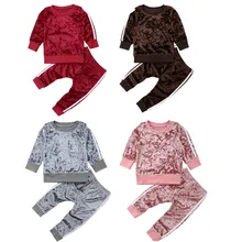 A collection of four different colored onesies is displayed. The first onesie is red with a pattern of white and black stripes. The second onesie is blue with a pattern of white and black stripes. The third onesie is brown with a pattern of white and black stripes. The fourth onesie is pink with a pattern of white and ... | 81d144949b3 Fashion Kids Baby Boy Girls Sports Clothes Toddler Baby Girl Boy Striped Velvet Autumn Spring Suit Hoodies Pants 2Pcs Outfit Set | de37de73834ddb9260f79aeeee37583746c94be4ad3f19c52bd62b42190016fb | 001065737232 | 0 | 0 | 75 | 22 | 0 | 0 | |