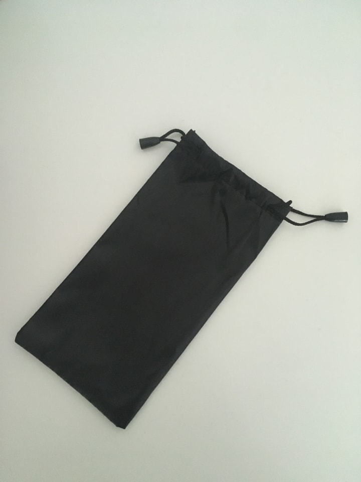 A black fabric pouch with a drawstring closure is lying on a white surface. The pouch has a smooth texture and is folded in half, with the drawstring tied in a bow at the top. | Black glasses bag | 5c72d0305759a4267b28a55381c0c7e867c56f1ee0eb16de390b3337116377b2 | 001065737219 | 0 | 0 | 35 | 3 | 0 | 0 | |