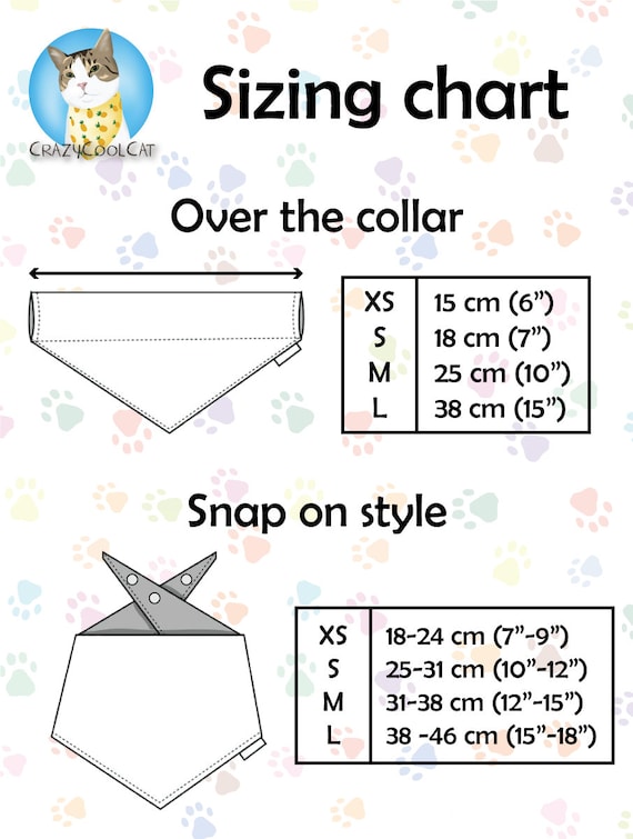 A cat-themed measuring tape with a chart showing measurements in centimeters and inches, and a 'Snap on Style' label. The chart includes measurements for a cat's collar and a cat's paw. The background is a pattern of paw prints and hearts. | Dog Bandana Honeybee Triangle Bibs Scarf Accessories for Dogs Cats Pets Animals | e7bbf9384a176ec1d2ea7f0b2299147af3cd4c51be222fa3ee5d73e58ffb079d | 001065738104 | 0 | 0 | 41 | 12 | 0 | 0 | |