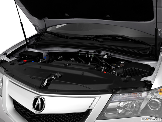 The first image shows the engine compartment of a car with the hood open. The engine is detailed with various components such as the intake manifold, throttle body, and air filter visible. The engine is predominantly black with some silver and red accents. The hood is white, and the background is a plain white color. | 2013 Acura MDX | 217980e9cb405a90185a6d26e96b7dbf30eadf2492429d6a5846fa0db13af840 | 001065738120 | 0 | 0 | 55 | 3 | 0 | 0 | |