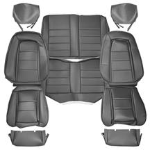 A set of black car seats is displayed against a white background. The seats are arranged in a way that shows the backrests and headrests of two seats in the front row, and the backrests of two seats in the middle row. The seats are positioned upright, and the headrests are folded down. The seat cushions are not visible in this view. | Mustang TMI Sport Seat Upholstery Charcoal Gray Vinyl (85-86) Convertible | b01ab5dd4baf4212ec0255890555c4b00b3654aeeab8e7cbdb5fdf3576771424 | 001065739362 | 0 | 0 | 62 | 10 | 0 | 0 | |