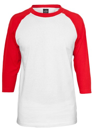 A white t-shirt with red sleeves and a red collar is displayed against a white background. The t-shirt has a round neckline and a tag on the back collar. | Urban Classics Contrast 3/4 Sleeve Raglan T-Shirt , white/red White/Red | d3043059680dcde7ae2ff45b4440c3562b3fa9b010b444076d3a23d45fa6409f | 001065739351 | 0 | 0 | 29 | 10 | 0 | 0 | |