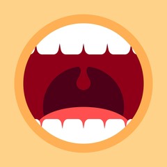 The second image shows the same stylized illustration of a human mouth with teeth, but now the teeth are white and the tongue is red. The background is a solid yellow color, and the image is framed with a yellow border. The overall appearance is more vibrant and colorful compared to the first image. | Open mouth with teeth and tongue. Screaming mouth cartoon in flat style. Vector Illustration | cf0ec81b8c1ebe14efb20cc6f7daf91a8c205774c6a5a2616fa1453f50f5d83b | 001065739269 | 0 | 0 | 54 | 14 | 0 | 0 | |