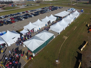 Aerial view of a large parking lot with numerous cars parked in rows. The lot is surrounded by a grassy area with tents set up for an event. People are walking around the tents, and there are traffic cones and a fire hydrant visible. The scene appears to be a busy outdoor event with attendees and vehicles. | More than 1,700 students participated in the Portsmouth Site\xc3\xa2\xe2\x82\xac\xe2\x84\xa2s Science Alliance event. | 06ec2d546ecd0f339991c142c1bb6372046b5b1e644abbb61bc5ed5fcc5d0144 | 001065739213 | 0 | 0 | 57 | 12 | 0 | 0 | |