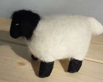 A black and white plush toy sheep with a fluffy texture is sitting on a wooden surface. The sheep has a black nose and eyes, and its wool is slightly ruffled. The toy is positioned with its head turned to the left, and its body is facing forward. | Felt Sheep, Waldorf Sheep, Waldorf Gifts | 2ad78b23a53d2fb63e776f40752573824f711290699f86e401789a66cc71138d | 001065739481 | 0 | 0 | 48 | 6 | 0 | 0 | |