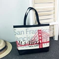 A black tote bag with a white and red design featuring the words 'San Francisco' and 'It's a city' is placed on a surface. The bag has a long handle and is positioned in front of a blurred background with a hint of a wooden structure. | Free Shipping Casual Waterproof Canvas Shopping Bags White with Bridge Pattern Women Handbags Shoulder Bags Shopping Bag HL145 | ca8f3c86fcffde4301864ccadff8b9aff7d1aa79fe65e09f49272d1f23d55be3 | 001065739670 | 0 | 0 | 46 | 18 | 0 | 0 | |