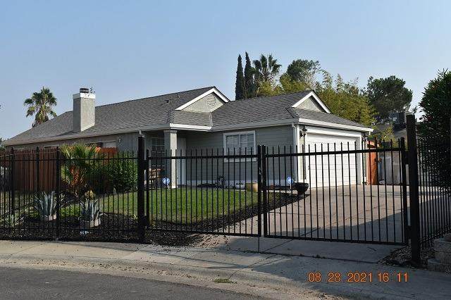 A two-story house with a gray roof and white walls is surrounded by a black metal fence. The house has a chimney and a garage with a closed door. There are palm trees and a cactus in the front yard, and a bench is visible near the fence. The sky is clear and blue. | 5099 N Laguna Drive, Sacramento, CA 95823 (MLS #221105772) :: REMAX Executive | 3d45838ad7d856b446863db0af37350dcf36804a600754efa583580b1036754c | 001065739720 | 0 | 0 | 54 | 12 | 0 | 0 | |