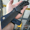 A hand is holding a black knife with a textured grip and a silver blade. The knife has a black handle with a silver button on the side and a black sheath attached to the handle. The hand is positioned in such a way that the knife is displayed diagonally across the image. | 10.25" HUGE GOLIATH CLEAVER BALL BEARING Assisted Open Pocket Folding Knife RAZOR Blade | e33c1101af3176b6062f23d56718f6118396c6b9d55b253cf597bc76797c63c5 | 001065739762 | 0 | 0 | 53 | 13 | 0 | 0 |