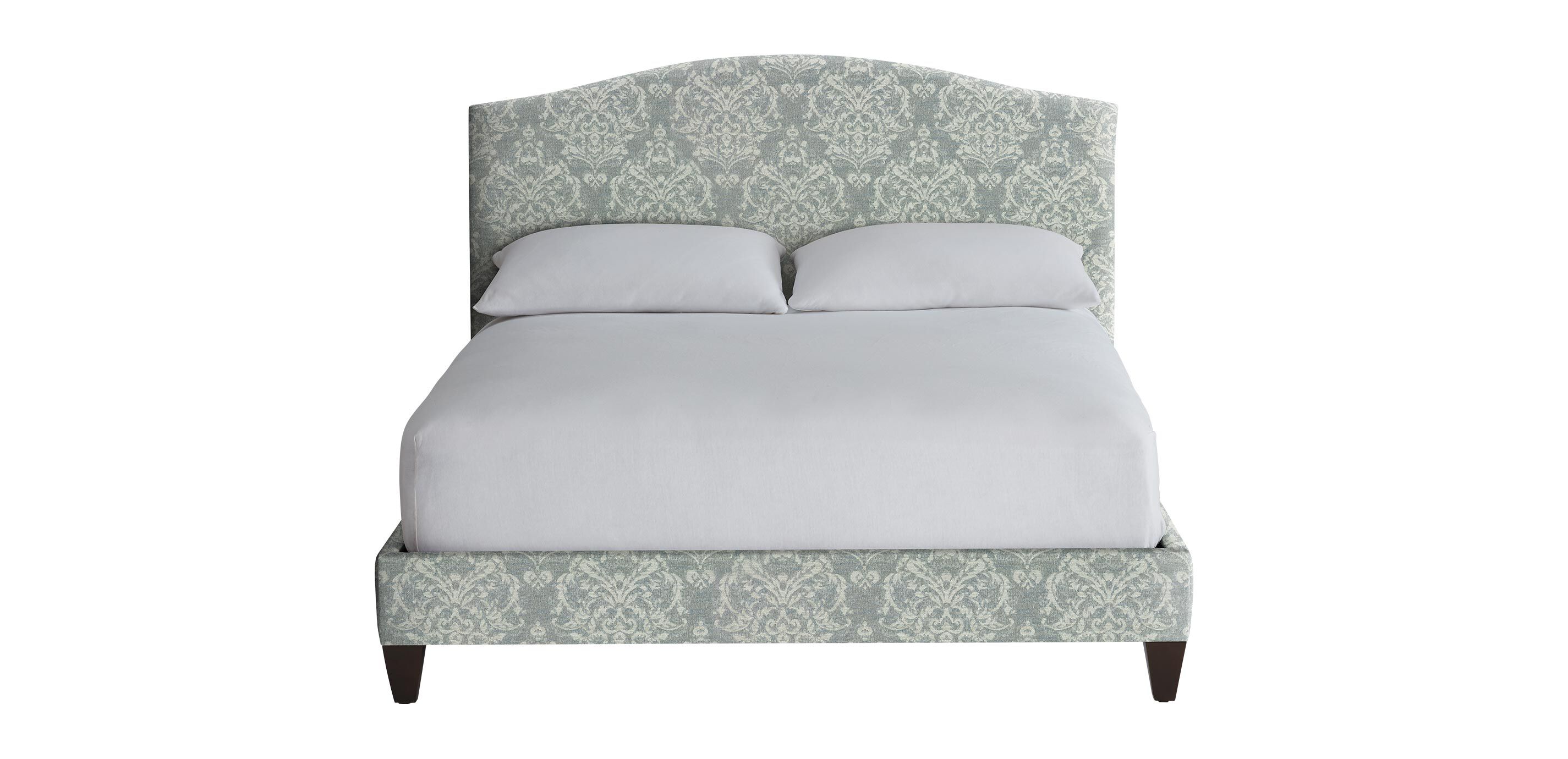 A bed with a white headboard and footboard, featuring a patterned fabric with a blue and white design. The bed has a white duvet with a matching pattern, and the bed frame is made of dark wood. | Rania Custom Upholstered Bed Curved, Custom Upholstered Headboard King | 784f392fcef60d5f7e089a86df4c4c6ee33b8837c8bcb5e36fb5ddc09c1c03c5 | 001065739730 | 0 | 0 | 37 | 9 | 0 | 0 | |
