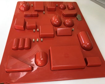 A red plastic toy set with various shapes and pieces is laid out on a white surface. The set includes a variety of shapes such as squares, triangles, and circles, as well as some smaller pieces that appear to be intended for assembly. The pieces are arranged in a way that suggests they are meant to be connected to form a larger structure. | 1960's Plastic Uten-Silo Original Design M space age Mod Wall all caddy Dorothee Maurer-Becker mod plastic wall storage mid century office | e85f091ee2eee00f48af805934816d2d249268c3f5cad3fa4acaecaeabdefecf | 001065740186 | 0 | 0 | 63 | 21 | 0 | 0 | |