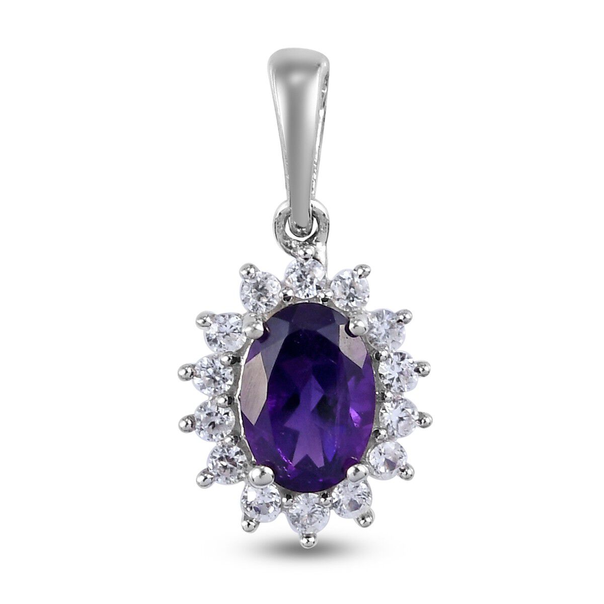A silver pendant with a large, round, purple gemstone surrounded by smaller white diamonds is displayed against a white background. | Amethyst and Natural Cambodian Zircon Pendant in Platinum Overlay Sterling Silver | c8e415e3e99bd7164f3a8473aedba8cb7951c5a0290c7b8cb6f302e671aa32bc | 001065740847 | 0 | 0 | 20 | 11 | 0 | 0 | |