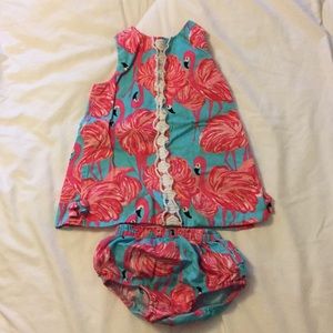 A pair of pink and blue floral patterned baby shorts with a matching vest is laid out on a white bedspread. | Lilly Pulitzer | 84e4ac132709729c5bb865976d83a2c9f7c8ab1971525e5a4ee3eef51af46832 | 001065741053 | 0 | 0 | 21 | 2 | 0 | 0 | |