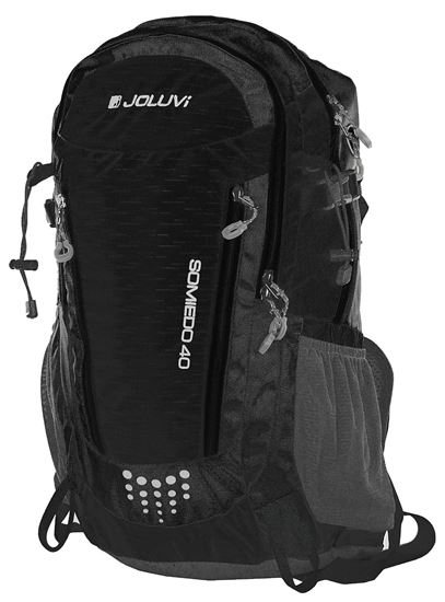 A black backpack with a grey interior is displayed against a white background. The backpack has a zipper closure at the top and multiple compartments, including a laptop sleeve with a Velcro closure. The brand name 'JOLVI' is visible on the front of the backpack. | Picture of SOMIEDO 40 BAG | 0c5d2dd70239053e3d2457ca11dc2bb359d5cdcde6432fe5c9089bf93435ac76 | 001065741043 | 0 | 0 | 45 | 5 | 0 | 0 | |