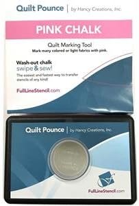 A close-up of a Quilt Pounce Pink Chalk marking tool with a pink cap and a blue and white background. The tool is placed on top of a Quilt Pounce logo with the words 'Quilt Pounce' and 'by Honey Creations, Inc.' visible. The logo features a stylized blue and white design with a pink cap and a silver coin-like object in the center. | Hancy Blue Quilt Pounce Pad 4-Ounce with Chalk Powder | df253bfdd98ed6ed6ca45d21d8dee689913d2cf31cbf6a783a829f9a44b16983 | 001065741191 | 0 | 0 | 63 | 9 | 0 | 0 | |