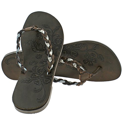 A pair of brown sandals with a floral pattern on the straps and a braided detail on the ankle strap. | LADIES URBAN BEACH AINALOA BROWN LEATHER TOE POST FLIP FLOP SANDALS -UK 5 (EU 38) | 24229edd6d557d428d99ff48ecc0c895b77a10e3316850127ba999dedbdffc25 | 001065741170 | 0 | 0 | 20 | 15 | 0 | 0 | |