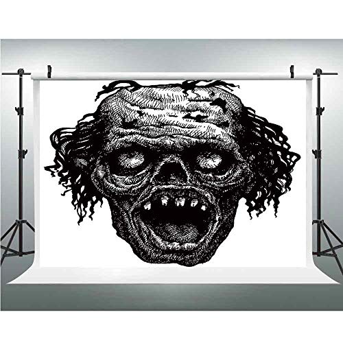 A black and white illustration of a grotesque, open-mouthed creature with wild hair and sharp teeth, displayed on a white background within a photo studio setting with a backdrop stand and lights. | Photo Video Photography Studio Fabric Backdrop Background Screen,Halloween,5x6.5ft,Zombie Head Evil Dead Man Portrait Fiction Creature Scary Monster Graphic | ffa9635cee633dc028c09e8f65c2673a7f33e6f03ad9fae31792ba9219e154fa | 001065741340 | 0 | 0 | 32 | 18 | 0 | 0 | |