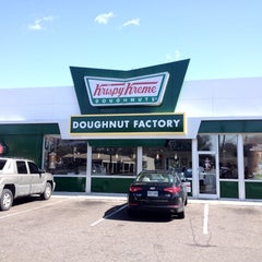 A black car is parked in front of a Krispy Kreme doughnut factory. The building has a green roof and a large sign that reads 'Krispy Kreme Doughnut Factory'. There are several other cars parked in the lot, and a truck is visible on the left side of the image. The sky is clear and blue. | Photo taken at Krispy Kreme Doughnuts by Marcus W. on 3/3/2012 | c2a884c067be49cc2efa2e010dfe2d313d71162c970de9f69db7291356f4b497 | 001065741288 | 0 | 0 | 56 | 11 | 0 | 0 | |