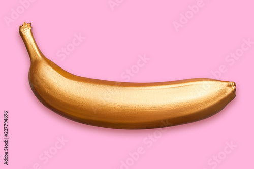 A golden banana with a shiny surface and a stem at the top is placed against a pink background. The banana has a smooth texture and a natural curve, with a visible end where the stem meets the fruit. The background has a soft pink hue and is slightly blurred, giving the banana a focal point. | Golden metallic banana on a pink background. A modern creative concept. Contemporary art | 2a08e91b3affdd66a7553279df22b95fabf9b6aecfdedadf762a5230e9628602 | 001065741501 | 0 | 0 | 56 | 13 | 0 | 0 | |