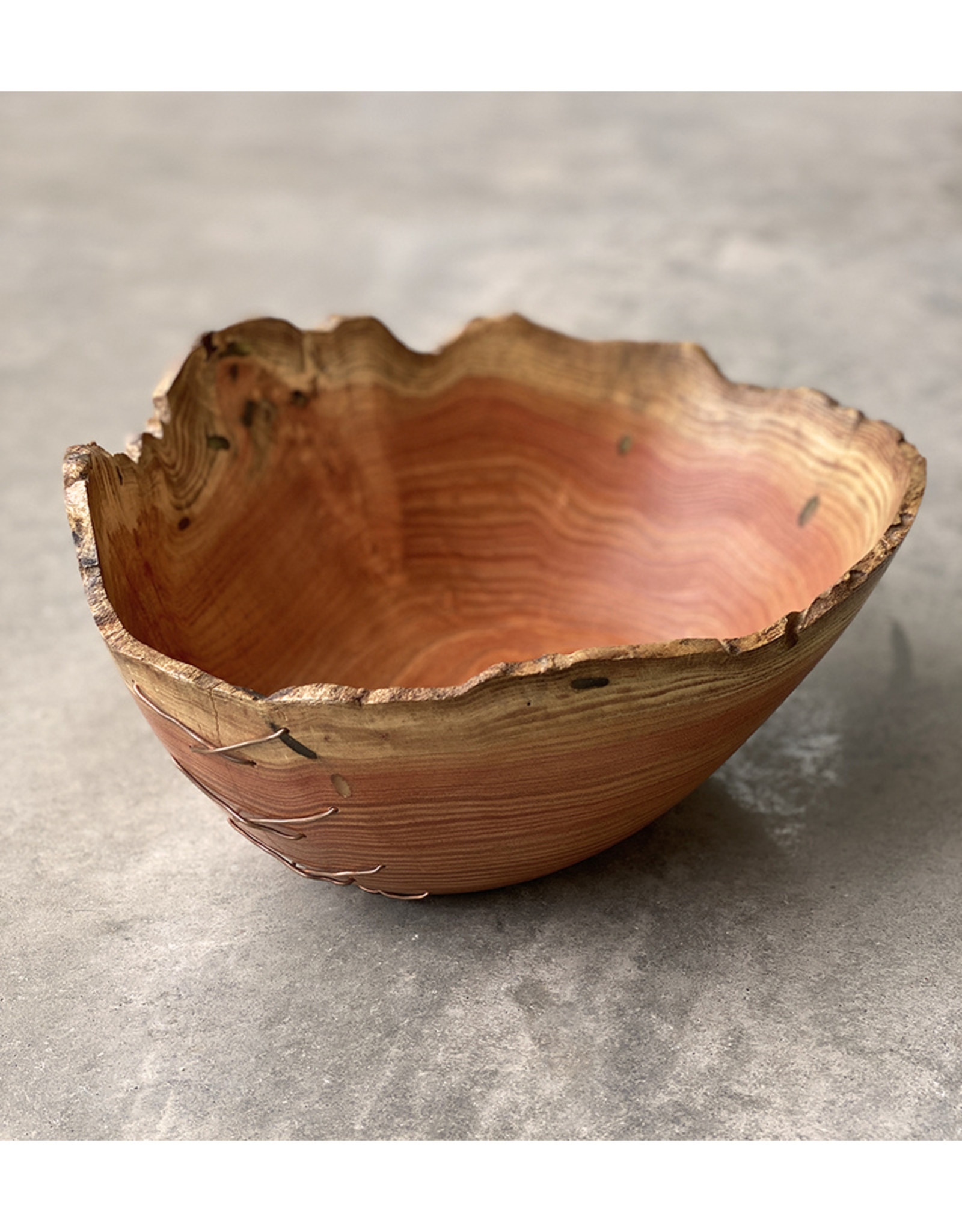A rustic wooden bowl with visible cracks and wear sits on a concrete surface. | Resurrected Woodworks #41 // Matt Roman | 874cbe58086e9d151cc036f36d0191a907a970f77dfbf8b6853d27a4577a2649 | 001065741571 | 0 | 0 | 14 | 6 | 0 | 0 | |