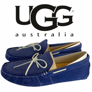 A pair of blue loafers with white laces and a gold buckle is displayed against a white background. Above the loafers, the text 'UGG AUSTRALIA' is written in a stylized font. | Ugg Everton Rivera emboss loafer | 2a05be960fc2a920f24c0fb8aa6a76c1f7c2d206cc635b937106c54a64d5b7fe | 001065741588 | 0 | 0 | 31 | 5 | 0 | 0 | |