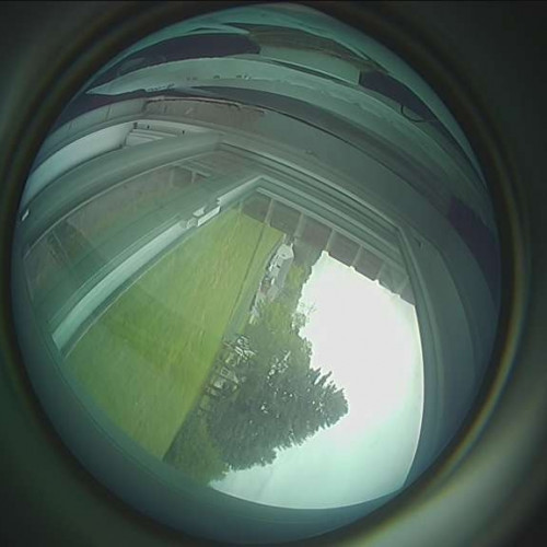 A fisheye lens view of a suburban backyard with a clear blue sky. The image is taken from a low angle, looking upwards, and shows a portion of a house with a white siding and a dark roof. The yard is lush and green, with a well-manicured lawn and a few trees. The sky is clear with a few wispy clouds, and the overall image has a warm, sunny feel. | united states - philadelphia: ip camera - philadelphia | fa0efeddb463b3832dbf042049c8ec10589d070be98aab2588311cb6a20bd63b | 001065741502 | 0 | 0 | 70 | 8 | 0 | 0 | |