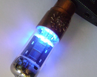 A close-up image of a USB flash drive with a blue light emanating from the end, casting a glow on the surface below. The flash drive has a metallic finish with a circular emblem on the side. | Steampunk radio tube flash drive 16GB. | ada63b35afefb6d7d74154241845d9f0d374b5c20e99206e91beb5b88fb1ffcc | 001065742260 | 0 | 0 | 37 | 6 | 0 | 0 | |
