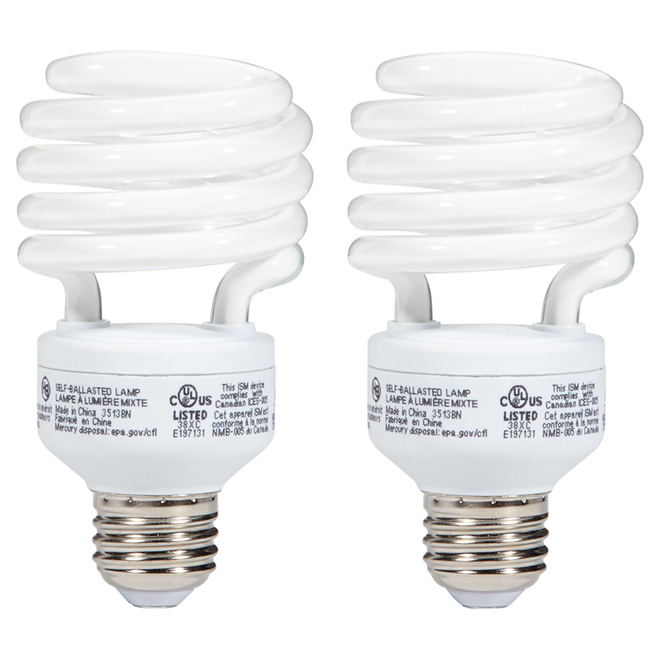 Two identical white LED light bulbs with a silver base and a white cap are displayed against a white background. Each bulb has a label with text and a barcode. | Fluorescent Bulb T2 23 W - Soft White - Pack of 2 | 15f324439210d817feec9f7a24cdd57b913fd66536e4cc212c5b90244c8c3f4d | 000910699883 | 0 | 0 | 30 | 12 | 0 | 0 | |