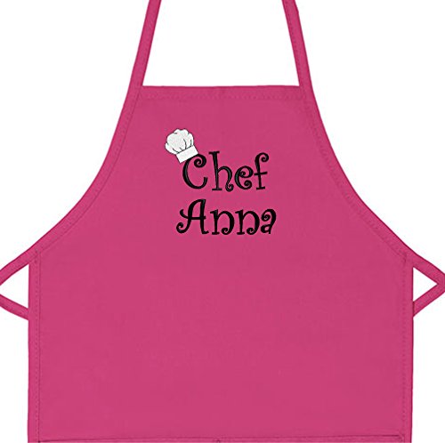 A pink apron with a chef's hat and the name 'Chef Anna' in black cursive font. The apron has a white trim around the edges and is placed against a white background. | Personalized Chef Any Name Child Apron (Regular 20 | 369940eaf8ee6f22e6be0e00cbfea59608708fe62b571f9268ec27b9135b16b0 | 000910699890 | 0 | 0 | 32 | 8 | 0 | 0 | |