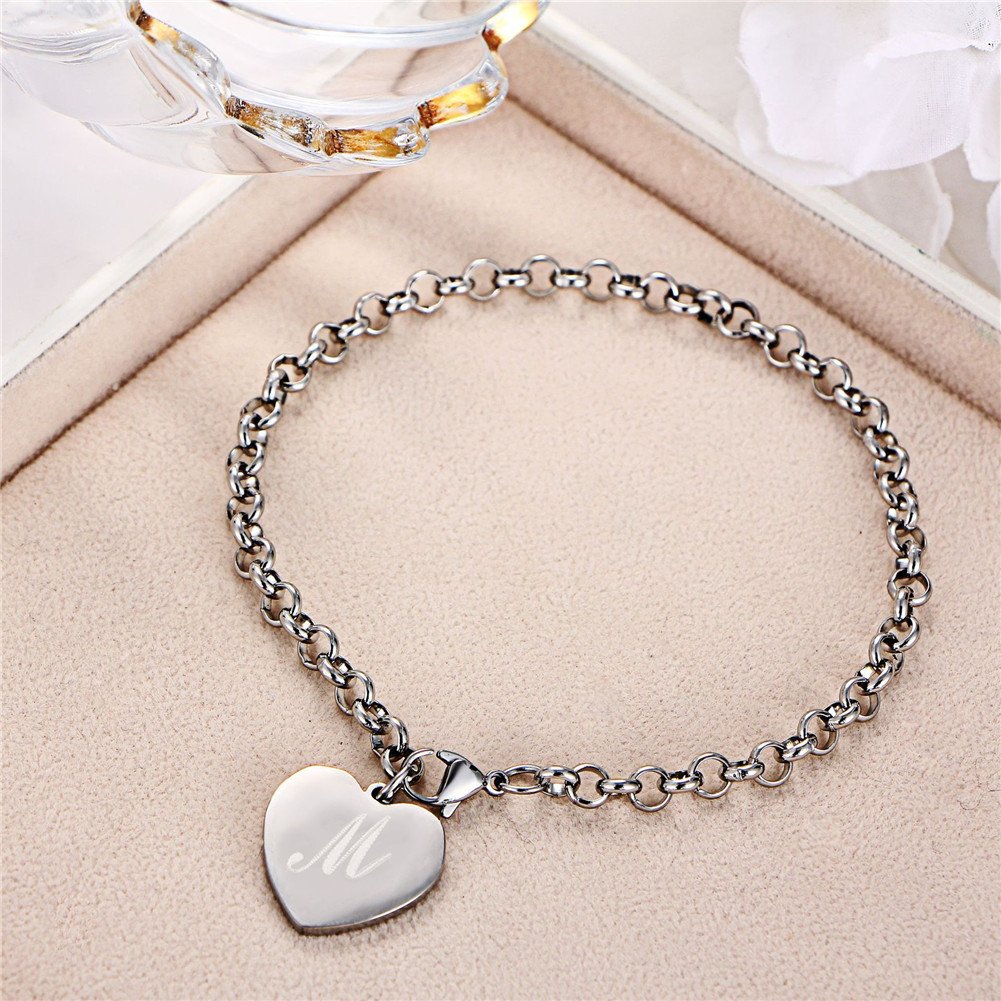 A silver heart-shaped locket with a monogram 'M' engraved on it is displayed on a velvet cushion. The locket is attached to a silver chain and is placed against a blurred background with a hint of a glass surface and a white flower. | LiFashion LF 316L Stainless Steel Personalized Name Date Custom Rolo Chain Initial Engraved Heart Tag Footchain Adjustable Anklet for Womens Girls Summer Vacation Beach,Free Engraving Customized | 63dca30f8af76880d679977b2825d98d6e496d47a1a1c0ff29c812d0f259a8f7 | 000910699936 | 0 | 0 | 43 | 26 | 0 | 0 | |