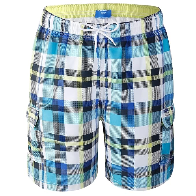 A pair of blue and white plaid shorts with a yellow waistband and a blue button. | 04c166e2e64c8 AjezMax Men's Swim Trunks Plaid Beach Surf Shorts with Cargo Pockets Mesh Lining Swimwear Size S | 0bce3d7c205e7da9e79a51d173f4ec8aa83650c52d056d7e597ef7116e52e47b | 000910699818 | 0 | 0 | 16 | 17 | 0 | 0 | |