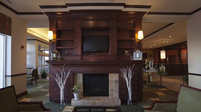 A cozy hotel lobby with a large, dark wood fireplace as the focal point. The fireplace is adorned with a flat-screen TV mounted above it and a decorative vase on the mantel. Two tall, thin vases with dried branches stand on either side of the fireplace. The room is furnished with comfortable seating, including a sofa and armchairs, and a small table with a vase and books. The walls are painted in a warm beige color, and the ceiling has a decorative crown molding. The floor is covered with a patterned carpet, and the room is well-lit with natural light coming from the windows. | Lobby Fireplace | 2be85daf482e93368538db2a1012556d37cd04e5c0b8ff35e334916383f3adfd | 000910699812 | 0 | 0 | 104 | 2 | 0 | 0 | |