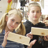 A young girl and boy are standing in a workshop, each holding a piece of wood. The girl is on the left, wearing a blue shirt with a striped collar, and the boy is on the right, wearing a black hoodie. They are both smiling and looking at the camera. The workshop has various tools and materials in the background, including a drill, a saw, and some wooden planks. | Small box kids woodworking project plans; woodworking for kids; easy, fun, kid friendly woodworking craft | fab24e34c38003e813295443858bb157bcfe7be947b5c89a27ecaaae90fc821e | 000910699820 | 0 | 0 | 69 | 15 | 0 | 0 | |