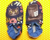 A pair of blue slippers with a floral pattern and a cartoon cat design on the left slipper, and a cartoon barrel design on the right slipper. The slippers are placed on a yellow background with a polka dot pattern. | Newborn slippers, vegan, ... | 3b2611b9d7e875650a428a8a4ce925ce2ee6112256ed175c192cd5d7f8699bdc | 000910701799 | 0 | 0 | 40 | 4 | 0 | 0 | |