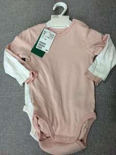 A pink baby onesie with a green tag attached to the neckline is laid out on a grey surface. The onesie has long sleeves and a ribbed neckline. The tag has a barcode and text that reads 'SIZE 3'. | H&M 2pack romper bodysuits 6-9M | 1773ac207f16a6fc8b376a74a807a610737cf7aee16a2e57f87a2f75b128600f | 000910701844 | 0 | 0 | 39 | 5 | 0 | 0 | |