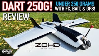 A white drone with black accents is displayed on a white surface. The drone has four propellers, two of which are visible. Above the drone, there is a red and white sign with the text 'DART 250g! Under 250 grams with FCB, BAT, & GPS! REVIEW'. The background is a blurred green field with yellow leaves scattered around. | UNDER 250G with GPS! - ZOHD DART 250G Fpv Wing - FULL REVIEW & FLIGHTS | be561398eb07fa3d4c1e8dea274a60a491dae6b20d1e186f222817989fbd54a9 | 000910702124 | 0 | 0 | 58 | 15 | 0 | 0 | |