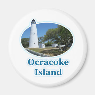 A white button with a blue border and the word 'Ocracoke' in blue font at the bottom. The button features an image of a lighthouse on a clear day with a blue sky and a few clouds. The lighthouse is white with a black top, and there is a small white building next to it. The scene is set against a backdrop of trees and a clear sky. | Ocracoke Island, North Carolina Magnet | 5545c7e798a991e1a56dae26b9661ea83bf38d3c708758fdfd085f831f160444 | 000910686609 | 0 | 0 | 68 | 5 | 0 | 0 | |