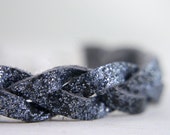 A close-up image of a bracelet with a textured surface that resembles a woven pattern. The bracelet is predominantly black with a silver-toned metal clasp. The background is a plain, light-colored surface that provides a neutral backdrop for the bracelet. | glitter leather bracelet with charcoal grey glitter | 37acf01178eb788e203c834c0541f2ede62303ba195a8b119556912c652578c7 | 000910702245 | 0 | 0 | 40 | 7 | 0 | 0 | |