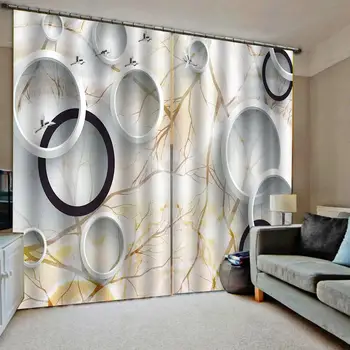 A living room with a beige sofa, a wooden coffee table, and a beige carpet. The room has a large window with a view of a garden, and the walls are adorned with a unique wallpaper featuring a pattern of white and gold circles and swirls. | Custom Photo marble circle Blackout Curtains Drapes for Living room bedroom home Drapes Decor | 8ef7527d68f206a9872fded3be88bc35311e37f825db79e1ff49c7fa37440f0b | 000910703127 | 0 | 0 | 46 | 14 | 0 | 0 | |