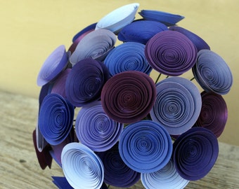 A colorful origami flower arrangement is displayed on a wooden surface. The flowers are made of paper in various shades of purple, blue, and pink, with intricate folds and patterns. The arrangement is composed of multiple flowers with different sizes and orientations, creating a vibrant and textured appearance. | Purple Paper Flower Bridal Bouquet, Large Wedding Bouquet in Plum, Violet, Amethyst, Lavender | 5eb359f5e103bc1624989e1fe5b2062598f495247facc97a4a3547d4af49470d | 000910703002 | 0 | 0 | 48 | 13 | 0 | 0 | |