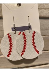 A pair of white earrings shaped like baseballs with red stitching is displayed on a white card with a purple tag. The earrings are attached to the card with silver hooks. | Round Baseball Earrings | d7a8b8db9c5385396539eb3b3cf0a34c7043c1e8d345364eb138747f18f4a521 | 000910703338 | 0 | 0 | 31 | 3 | 0 | 0 | |