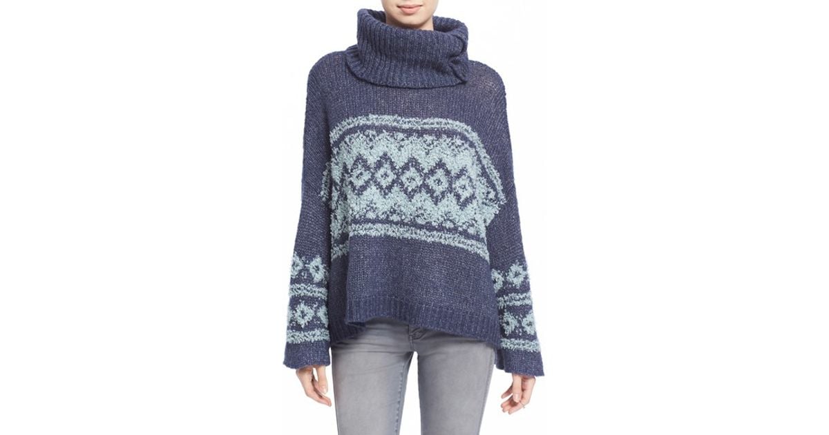 A person wearing a blue sweater with a patterned design and a grey scarf. | 7ab2a07e5 Lyst - Free People Fair Isle Split Neck Sweater in Blue | 37998af79fcb798cc1d58754decee719a31680425818ebbdc9b2869981afc02a | 000910703266 | 0 | 0 | 14 | 12 | 0 | 0 | |