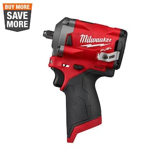A red and black power drill with the brand name 'Milwaukee' on it is displayed against a white background. The drill has a textured grip and a drill bit attached to the front. Above the drill, there is a 'BUY MORE SAVE MORE' tag with a red background and white text. | M12 FUEL 12-Volt Lithium-Ion Brushless Cordless Stubby 3/8 in. Impact Wrench (Tool-Only) | d26f74e7b8c8d6e99dd747a9e16783dbbf64e9a093b50c4be35dc9f5671d7553 | 000910703344 | 0 | 0 | 51 | 12 | 0 | 0 | |