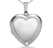 A silver heart-shaped locket with a chain is displayed against a white background. The locket has a textured surface with a pattern of concentric circles and lines, and it is closed, with the two halves of the heart not visible. | Sterling Silver Heart Picture Locket | 12425603816b08dc254a2dcd38282becd4d88297289510c1490d5c188d3c3a73 | 000910703280 | 0 | 0 | 40 | 5 | 0 | 0 | |