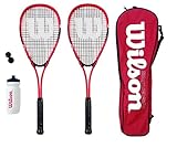 A pair of red and black tennis rackets with white detailing, a red and white tennis bag, and a white and red water bottle are displayed against a white background. | Wilson Hyper Team 500 Squash Racket Set With Squash Balls & Waterbottle | 33b74a50762dd4025cb8a2a4b513761c4efd91d6317bcd459d65558b8d365195 | 000910704214 | 0 | 0 | 30 | 12 | 0 | 0 | |