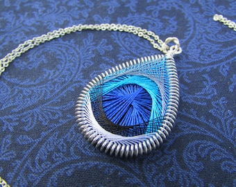 A silver necklace with a blue and white pendant is displayed on a blue velvet cloth. | Blue Jay Feather Necklace - Medium Size Pendant | 9e21468d93f13abd1d276d130498d107cc517792749e8e2084cd087155f99a8d | 000910704339 | 0 | 0 | 16 | 8 | 0 | 0 | |