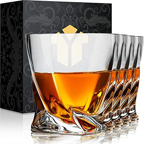 A set of six crystal glasses with a golden emblem on the base, arranged in a row on a reflective surface. The glasses are filled with amber-colored liquid, and the background features a dark box with a decorative pattern. | KITNATS Old Fashioned Whiskey Glasses 10 OZ Rocks Glasses Set | 71195e7078d3dadc7a3e71e480a42ae5e0961df5317770f37980afa64d9dcf10 | 000910704353 | 0 | 0 | 39 | 10 | 0 | 0 | |